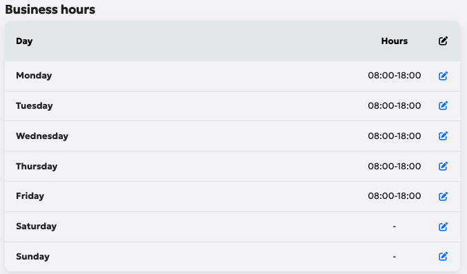 These are your general business or opening hours. They are for display purposes only and do not affect the order logic. They are typically shown on public-facing pages, such as your landing page.